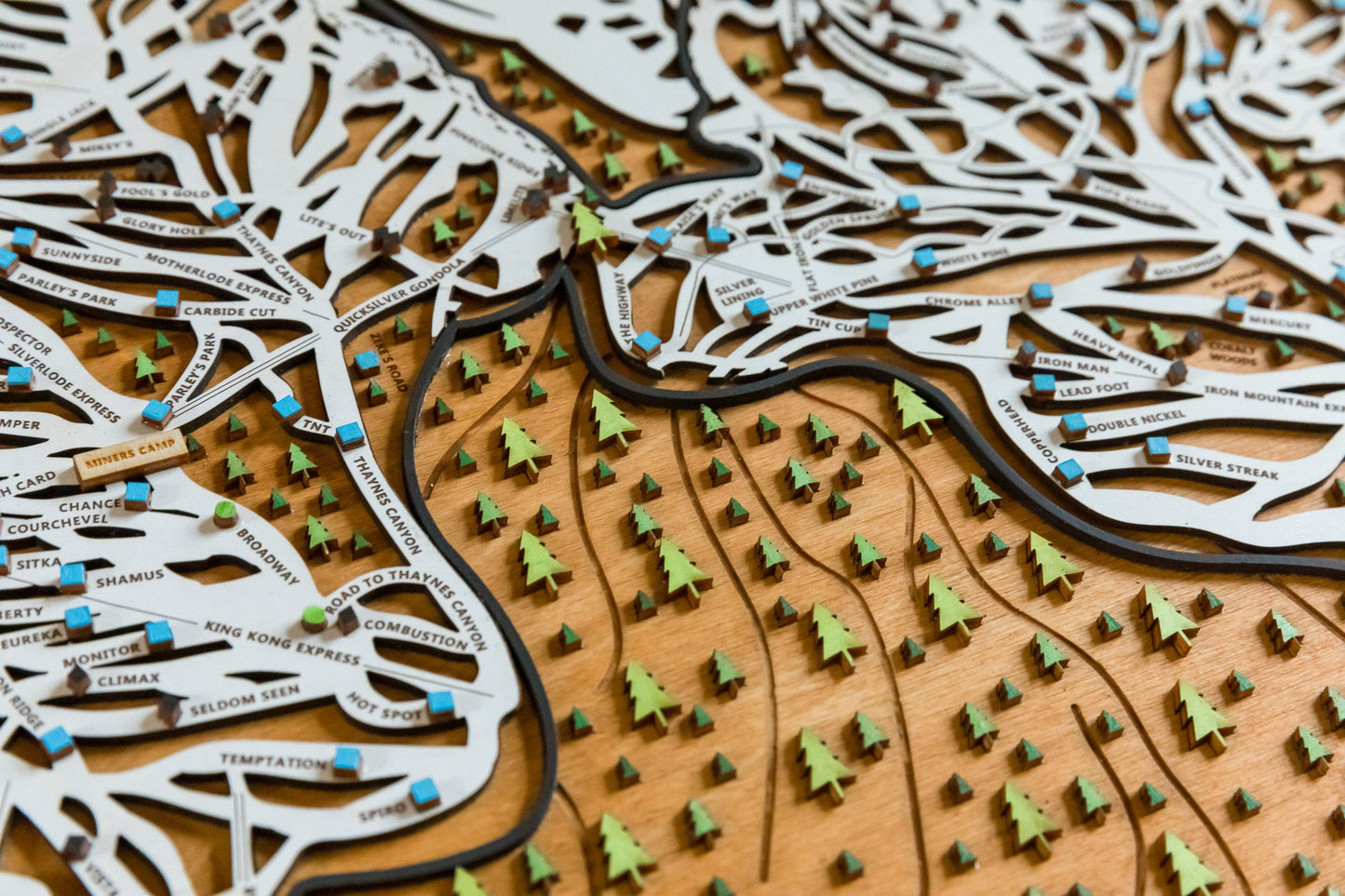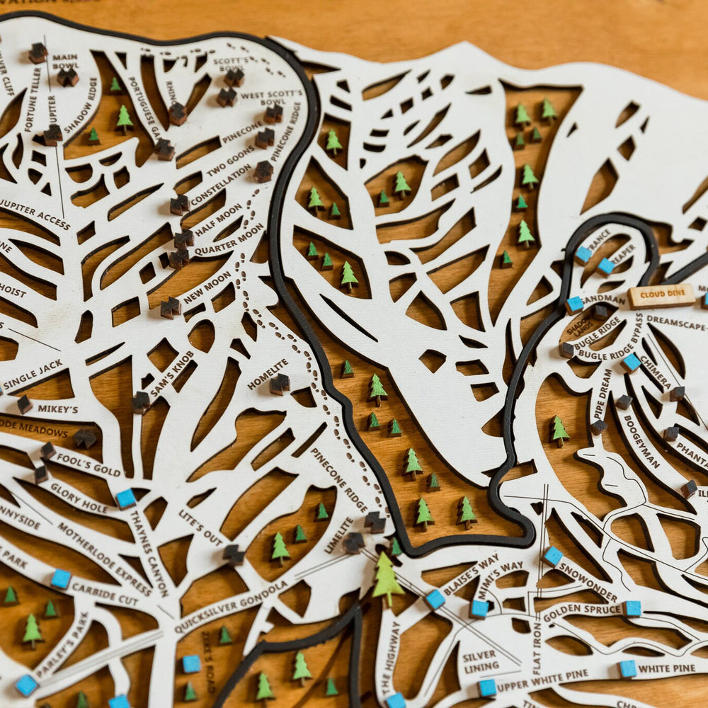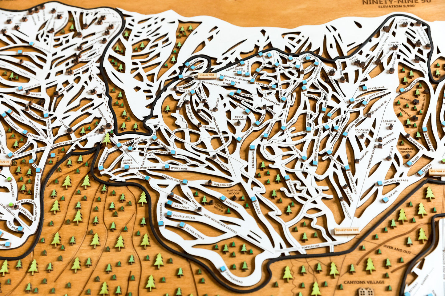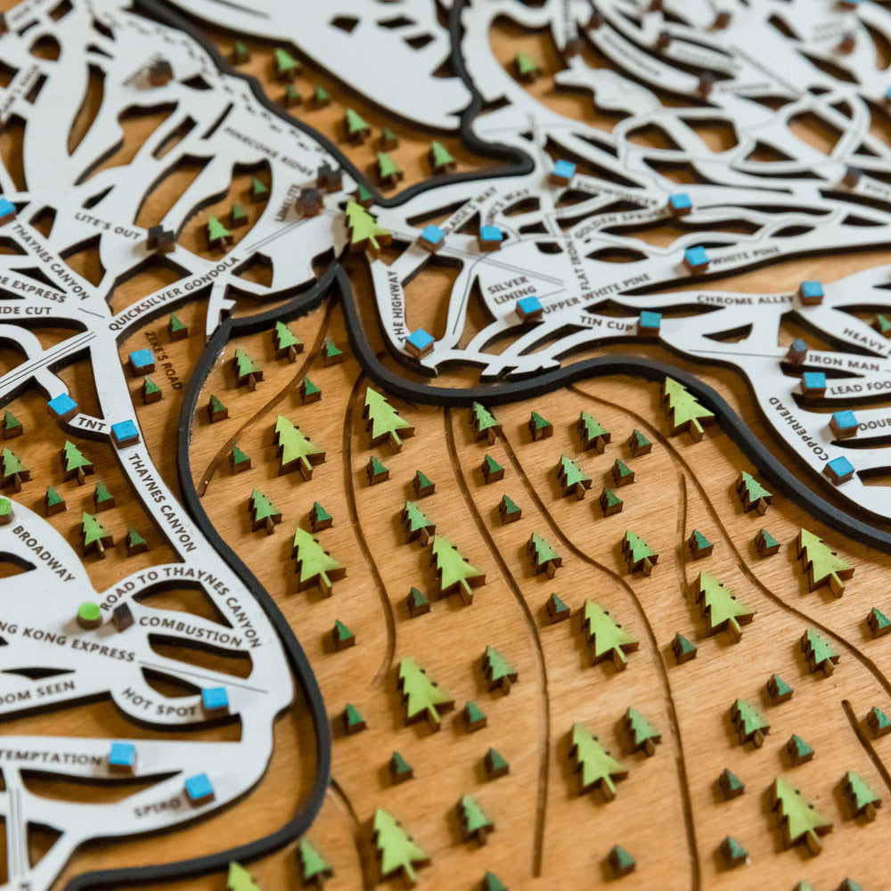 Every map is designed, hand drawn, and crafted inhouse with every piece being individually glued on one-by-one. In addition, all of our frames are made from scratch and are 100% wood. This is an official licensed Vail product which includes Park City's logo and trademarked features, making our products truly one of a kind.