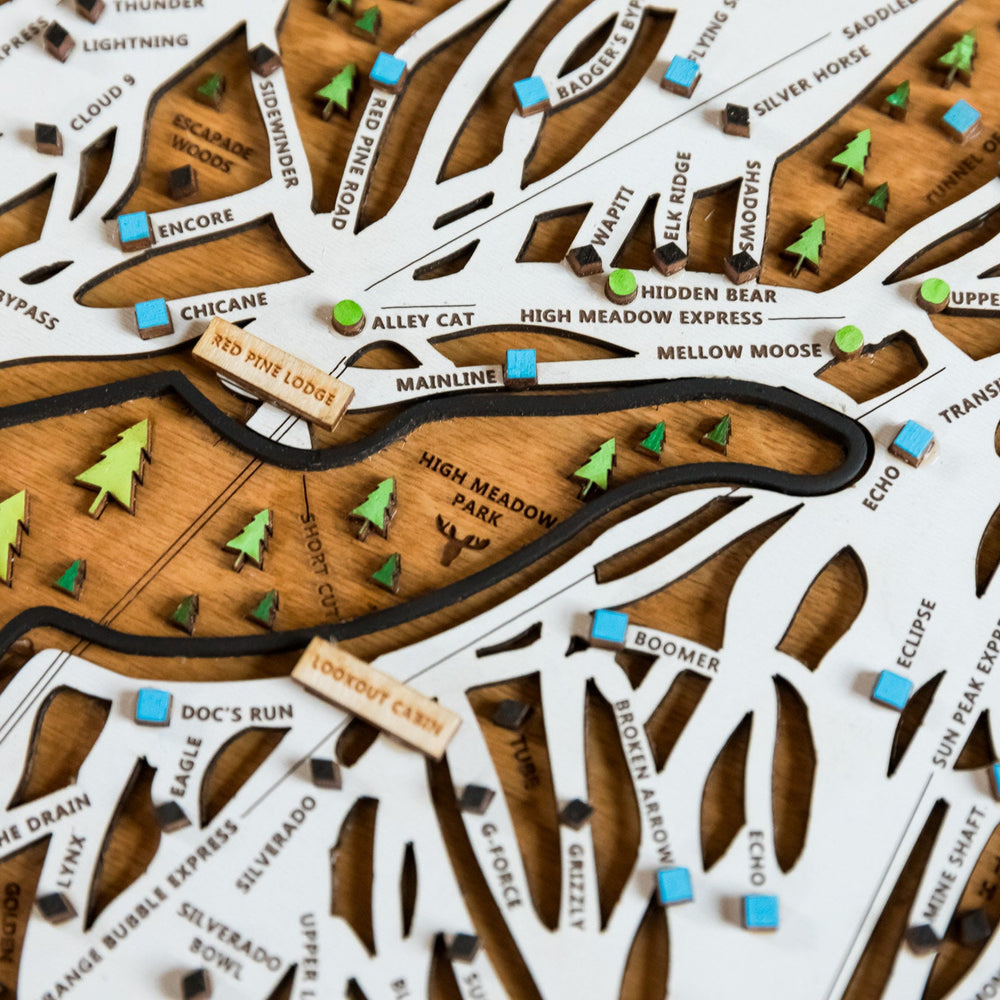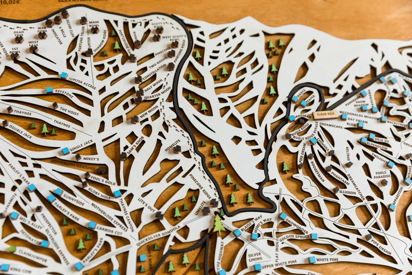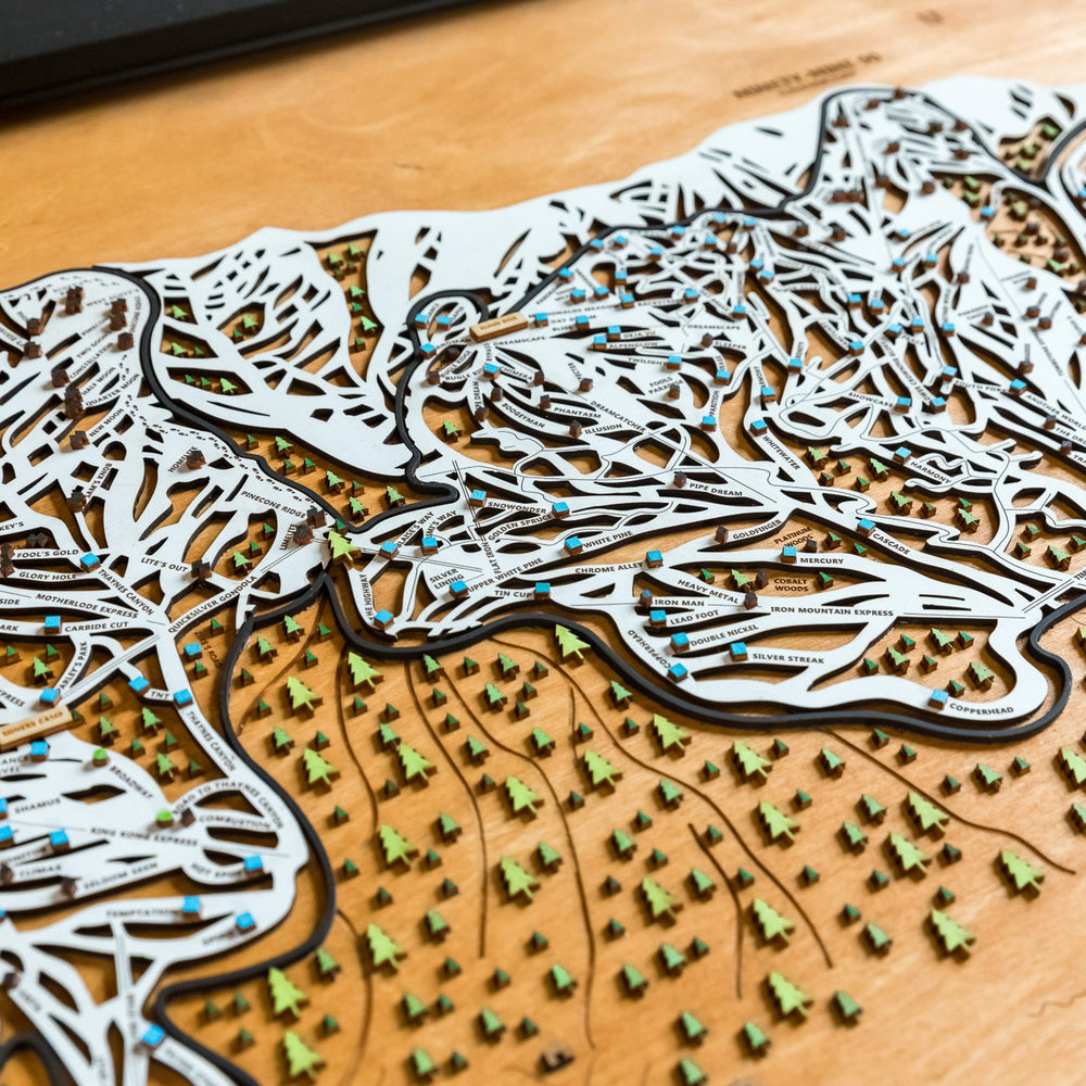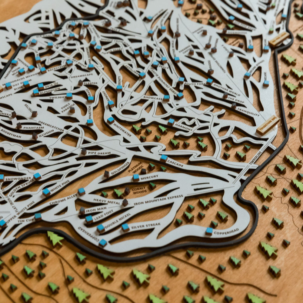 Every map is designed, hand drawn, and crafted inhouse with every piece being individually glued on one-by-one. In addition, all of our frames are made from scratch and are 100% wood. This is an official licensed Vail product which includes Park City's logo and trademarked features, making our products truly one of a kind.